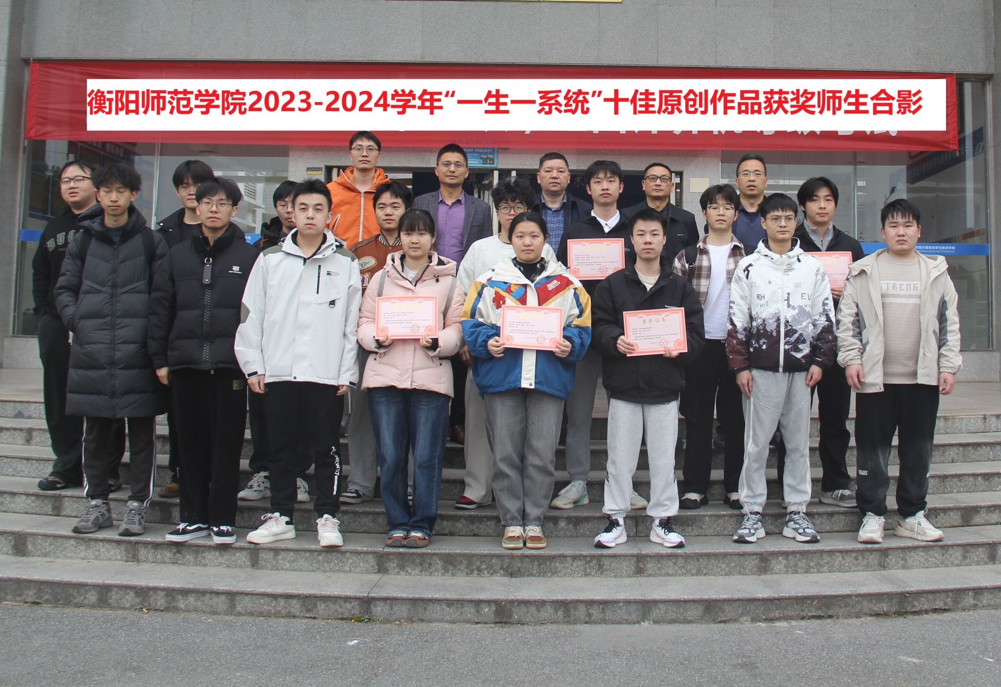 3月28日,必赢官网为2023-2024学年“一生一系统”十佳原创应用作品颁发荣誉证书。颁奖仪式在计算机楼312举办,必赢bwin线路检测中心3003李浪院长、郑光勇副院长、焦铬副院长、教师代表邓红卫教授、张剑老师出席颁奖仪式,必赢bwin线路检测中心3003李浪院长为学生颁发获奖证书。